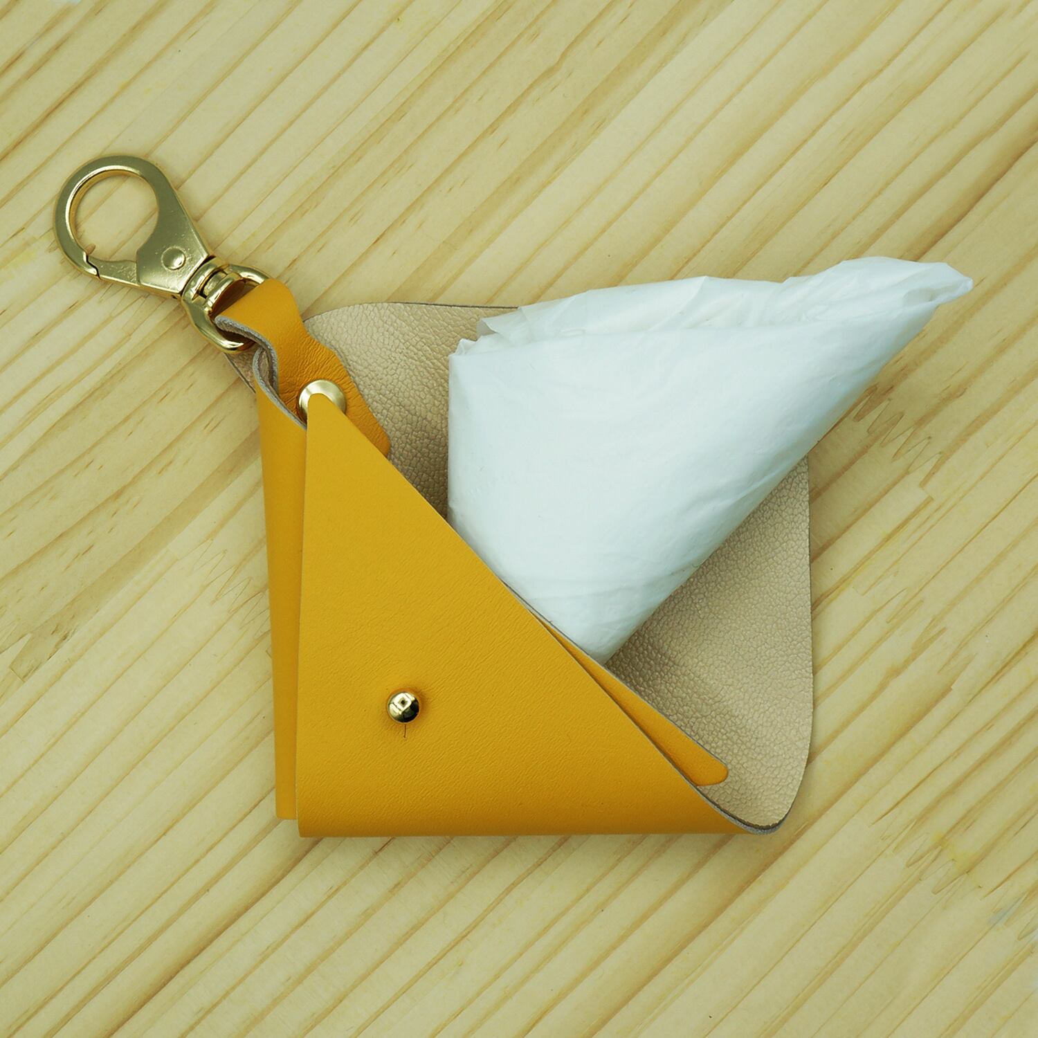 ◆◆◆本革 レジ袋収納・三角ポーチ <イエロー>◆◆◆
