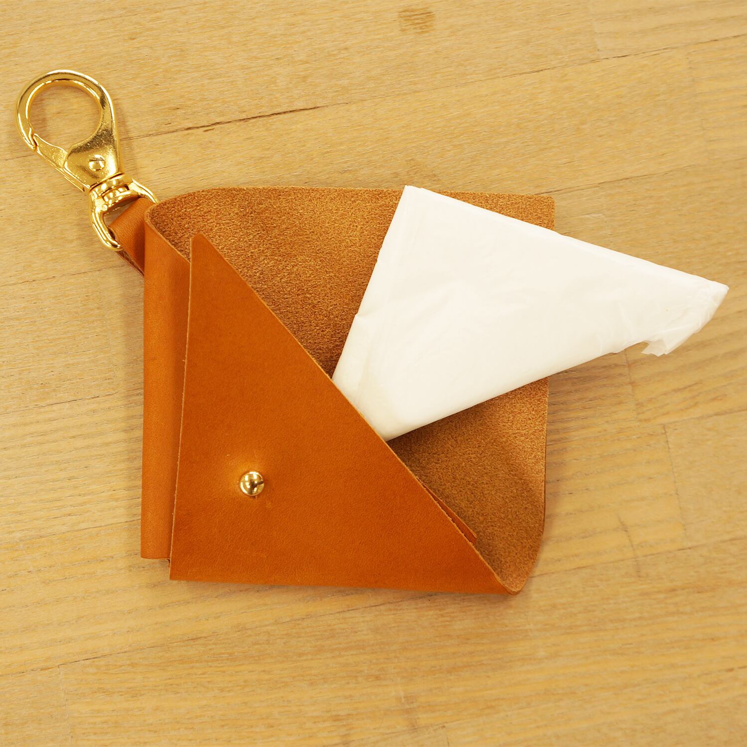 ◆◆◆本革 レジ袋収納・三角ポーチ <キャメル>◆◆◆
