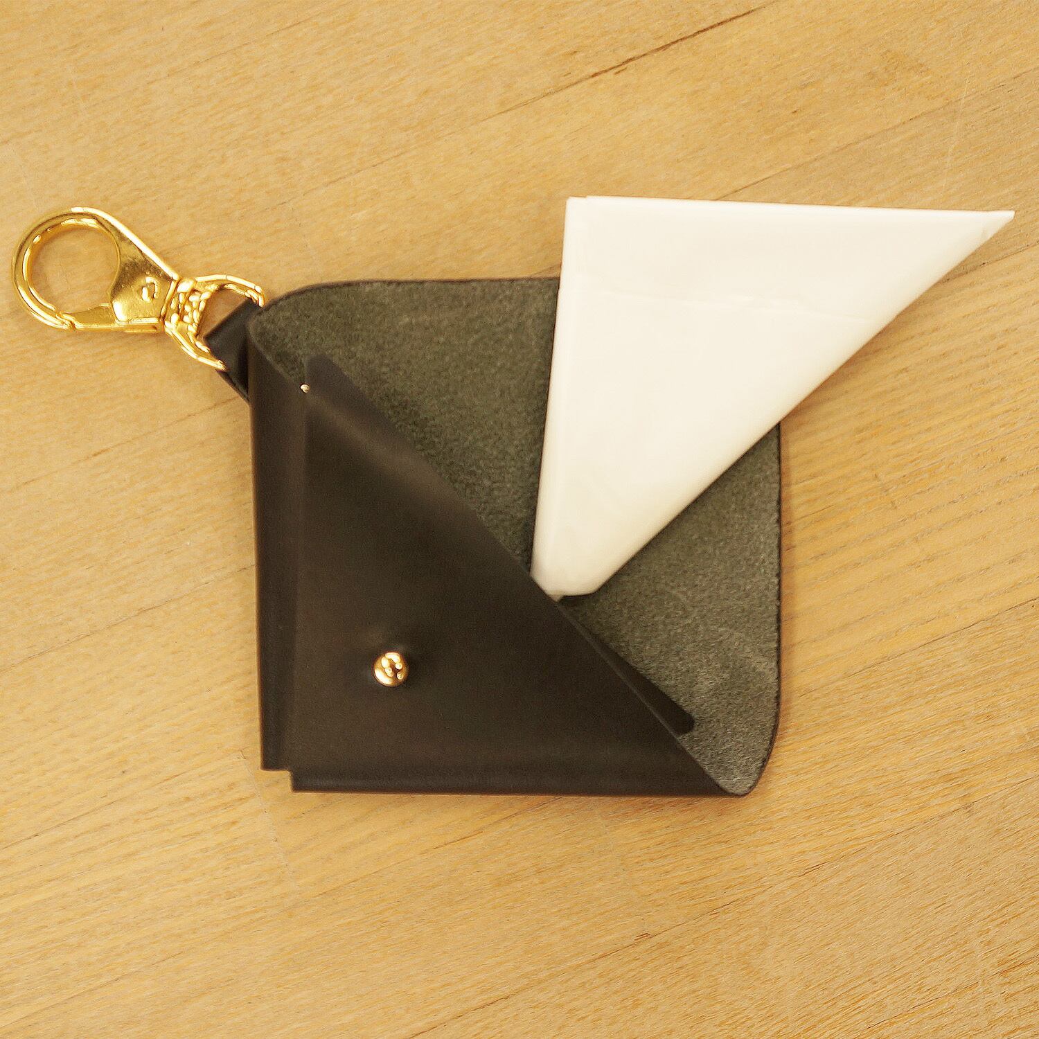 ◆◆◆本革 レジ袋収納・三角ポーチ <ブラック>◆◆◆