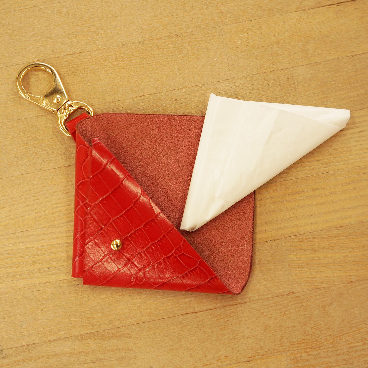 ◆◆◆本革 レジ袋収納・三角ポーチ <レッド>◆◆◆